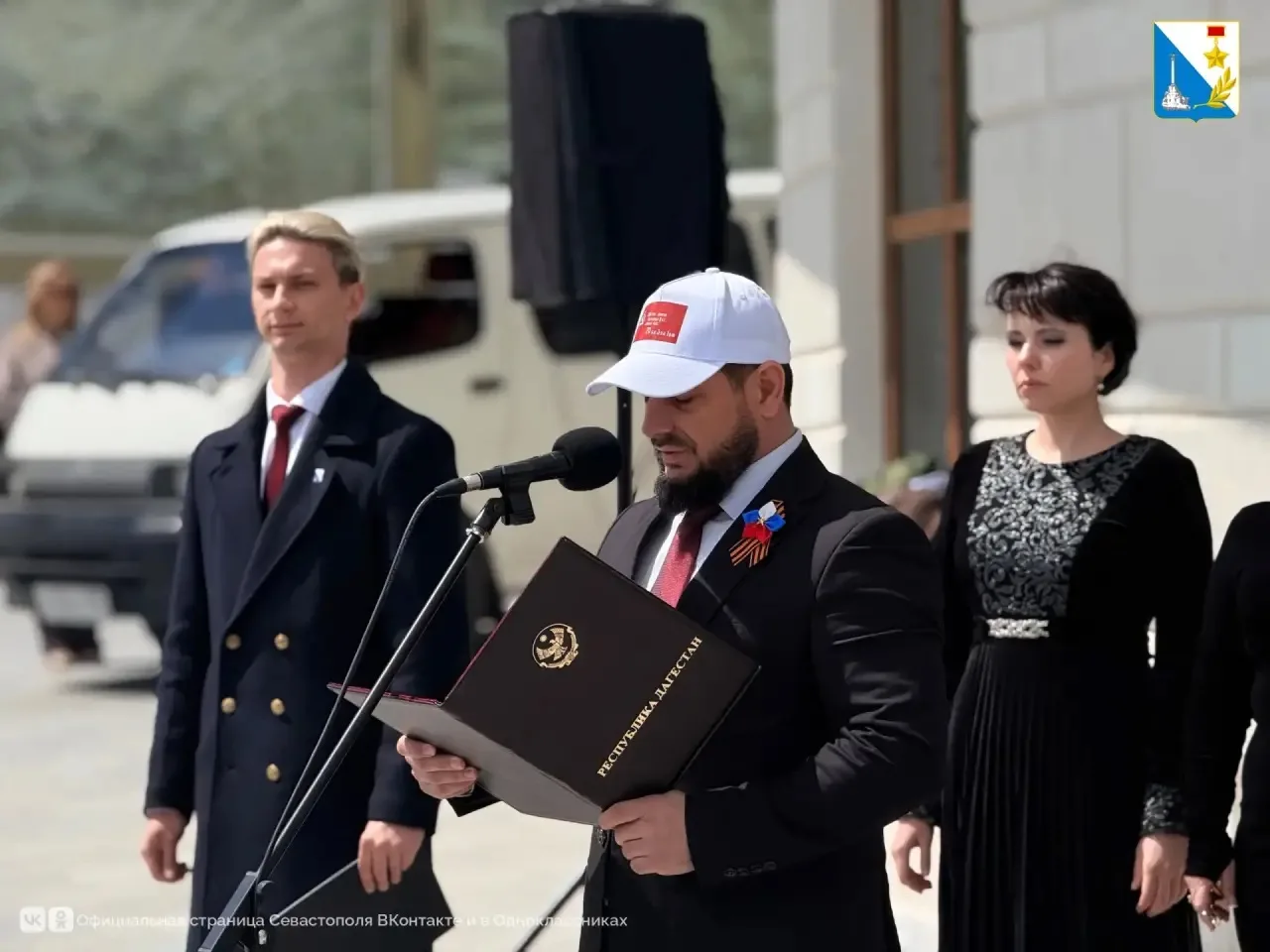 На Сапун-горе развернули копию штурмового флага 150-й стрелковой дивизии. В мероприятии участвовали представители Правительства Севастополя и Дагестана, ветераны, участники программы «Севастополь — город героев», члены Общественной палаты и молодёжь.