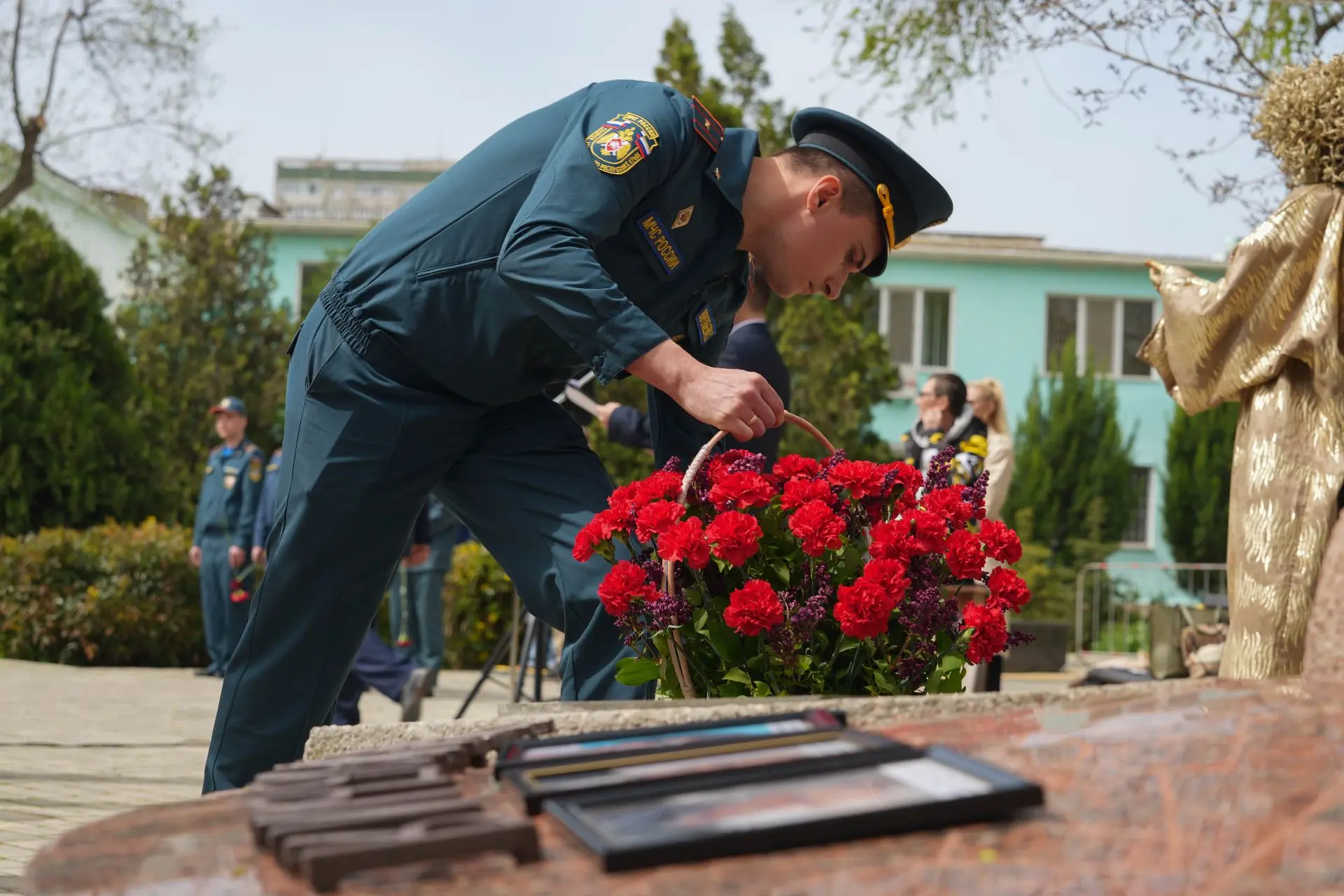 Сегодня в сквере Памяти героев Чернобыля прошла церемония возложения цветов к монументу «Жертвам Чернобыля» и памятному знаку спасателям и пожарным.