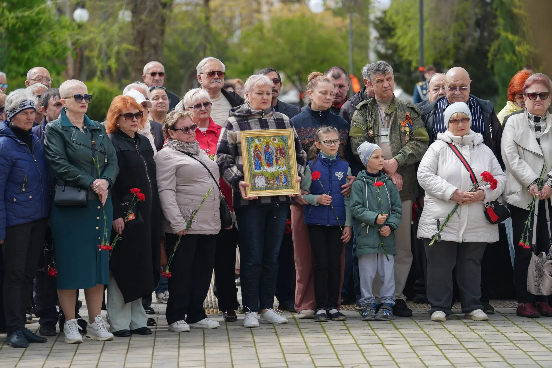 Собравшиеся почтили всех погибших минутой молчания, а затем была проведена панихида, после чего состоялось возложение цветов к памятникам.