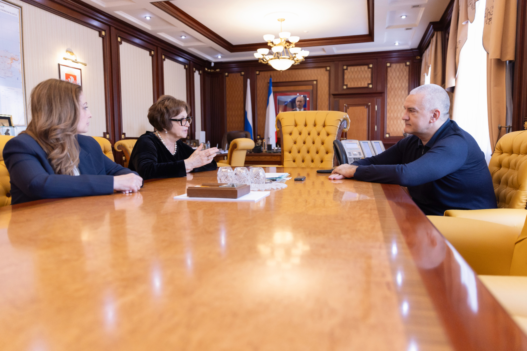 Сергей Аксёнов также обсудил с Екатериной Лаховой и Ноной Бахаревой ключевые направления совместной работы, прежде всего, по вопросам поддержки семей и охраны материнства и детства.