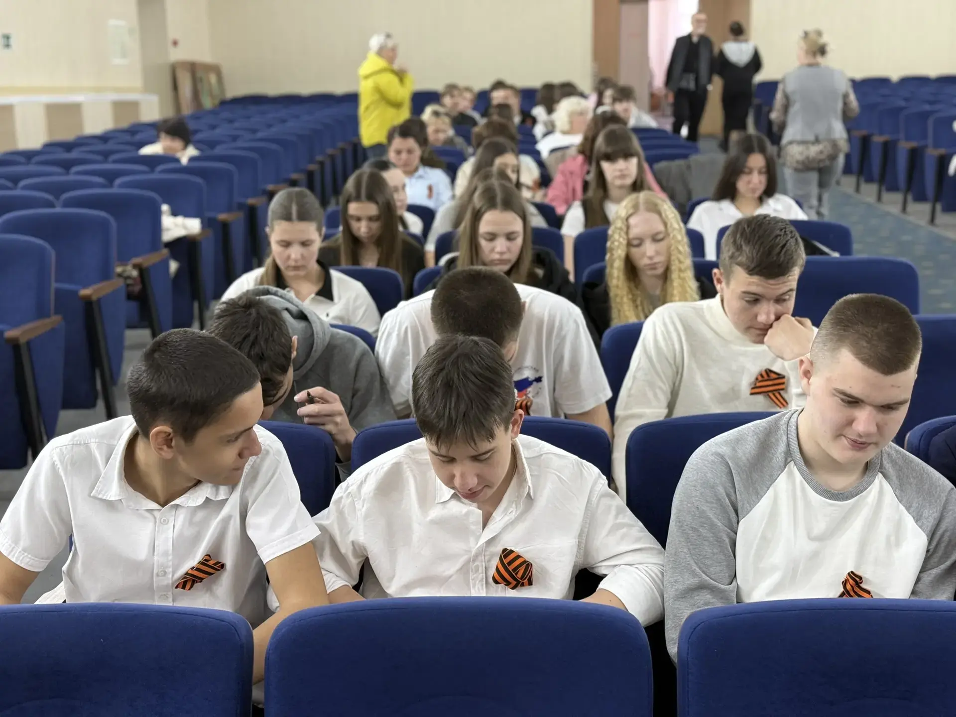Первый заместитель главы администрации Жанна Хмур, глава муниципального образования городской округ Джанкой – председатель Джанкойского городского совета Сергей Дорошенко совместно со школьниками приняли участие в акции на одной из площадок, организованной в актовом зале лицея № 2.