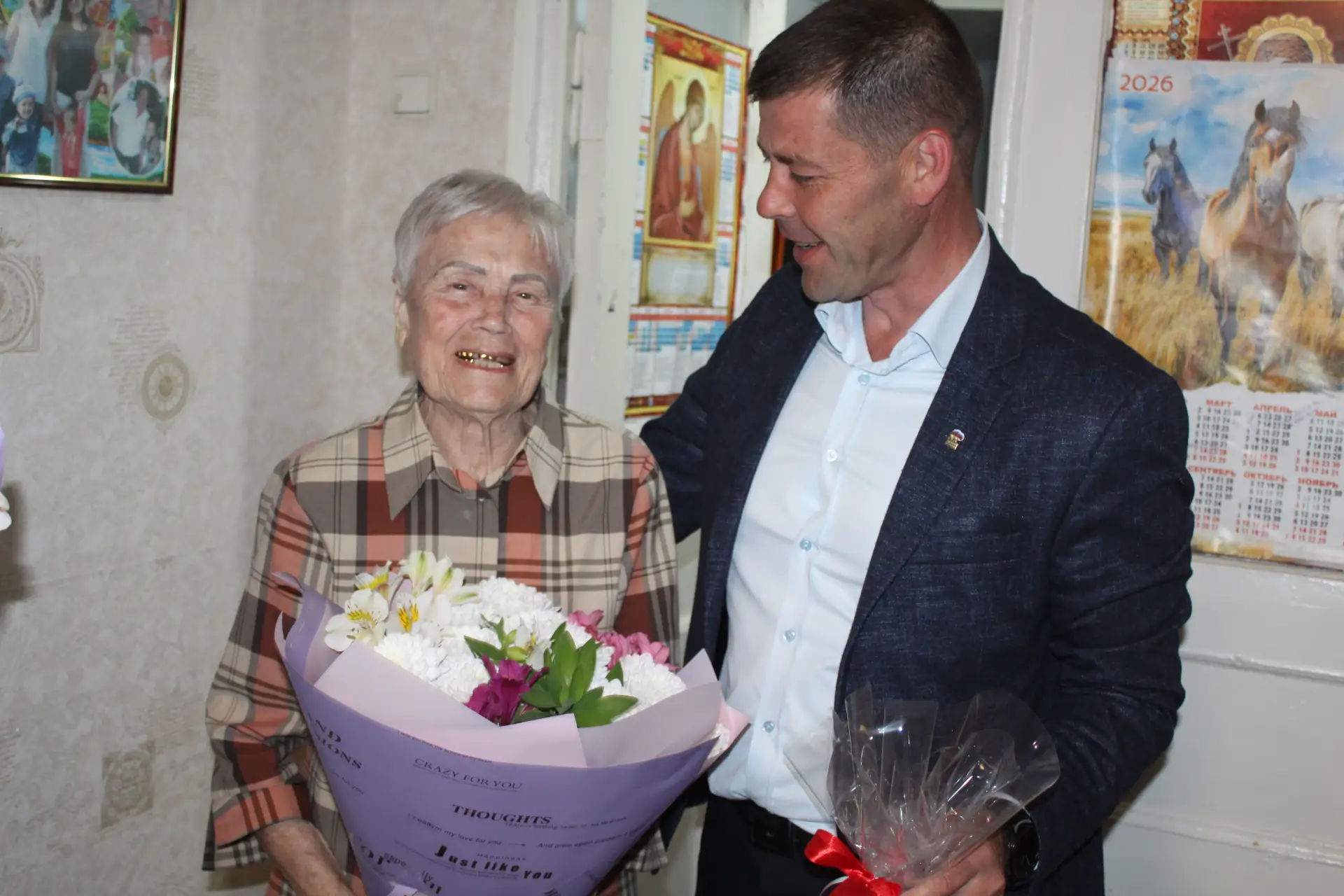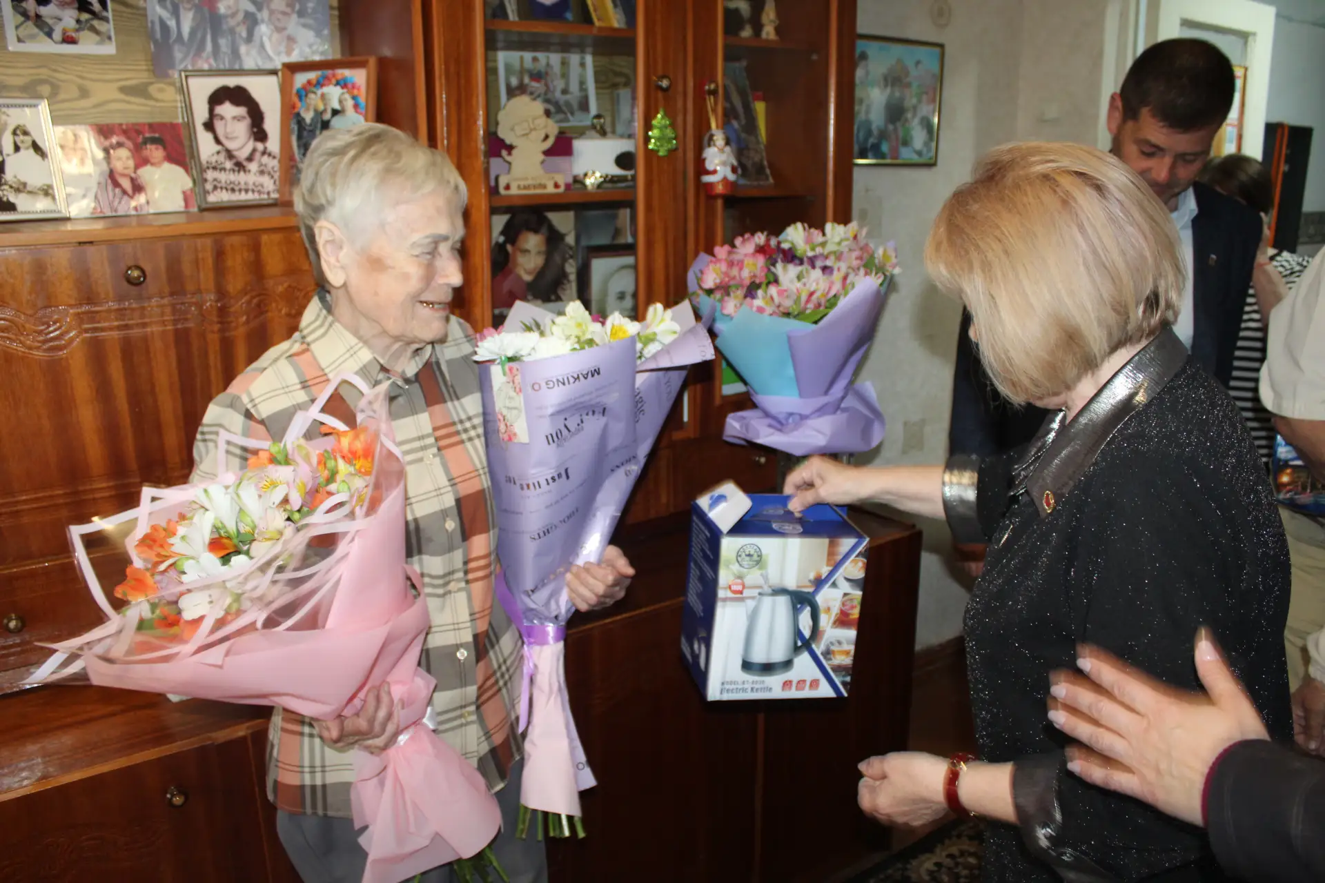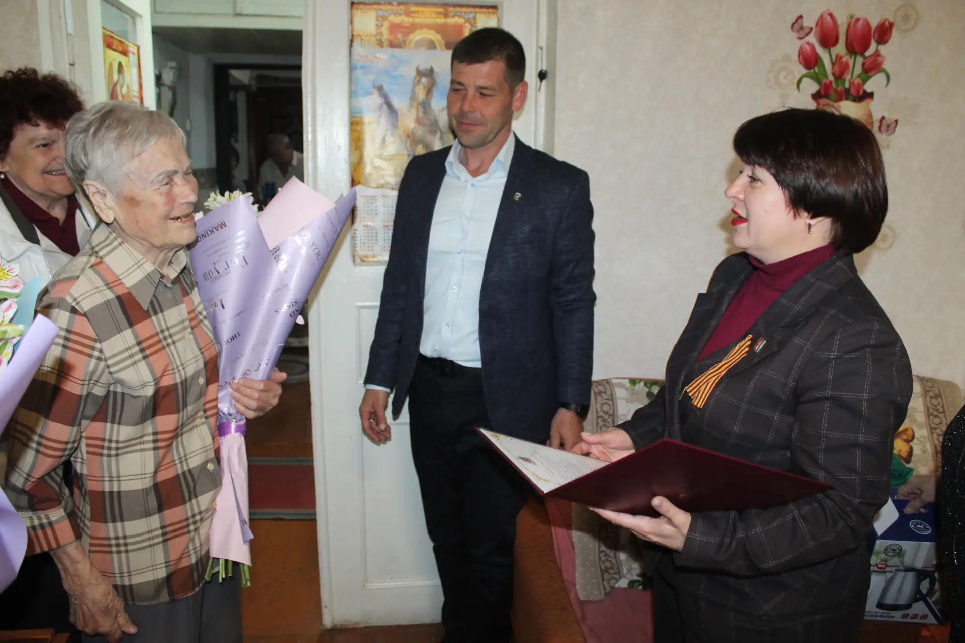 Председатель Советского районного совета Виктория Грицай совместно с председателем Советского сельского совета Максимом Кошевым, председателем районного Совета ветеранов Любовью Крюковской, председателем первичной ветеранской организации Советского сельского поселения Марией Брояковской поздравили ветерана труда, жительницу пгт Советский Бибик Нину Ивановну с 90-летним юбилеем.