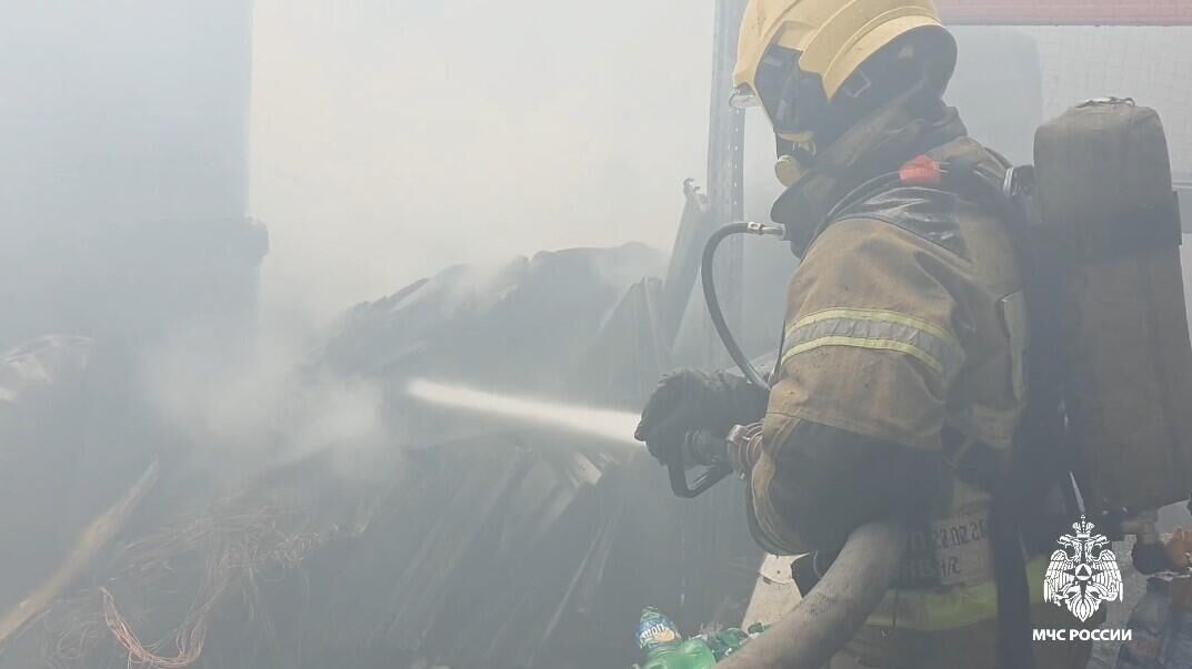 Тушение пожара на складе ТЦ в Симферополе