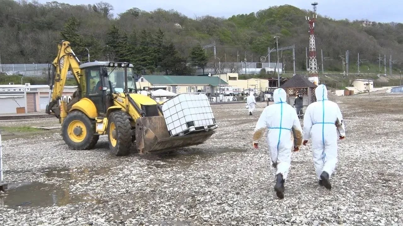Загрязнение убирают ниже по течению реки, а также в акватории и на берегу Черного моря. К работам привлечено 120 человек, 20 единиц техники и 2 плавсредства и 4 нефтесборные установки.