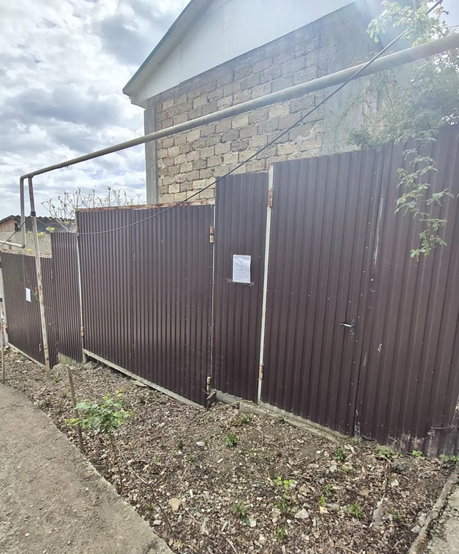 Забор из металла, коричневого цвета, в количестве 1 (одной) единицы, размер – 20 п.м.
