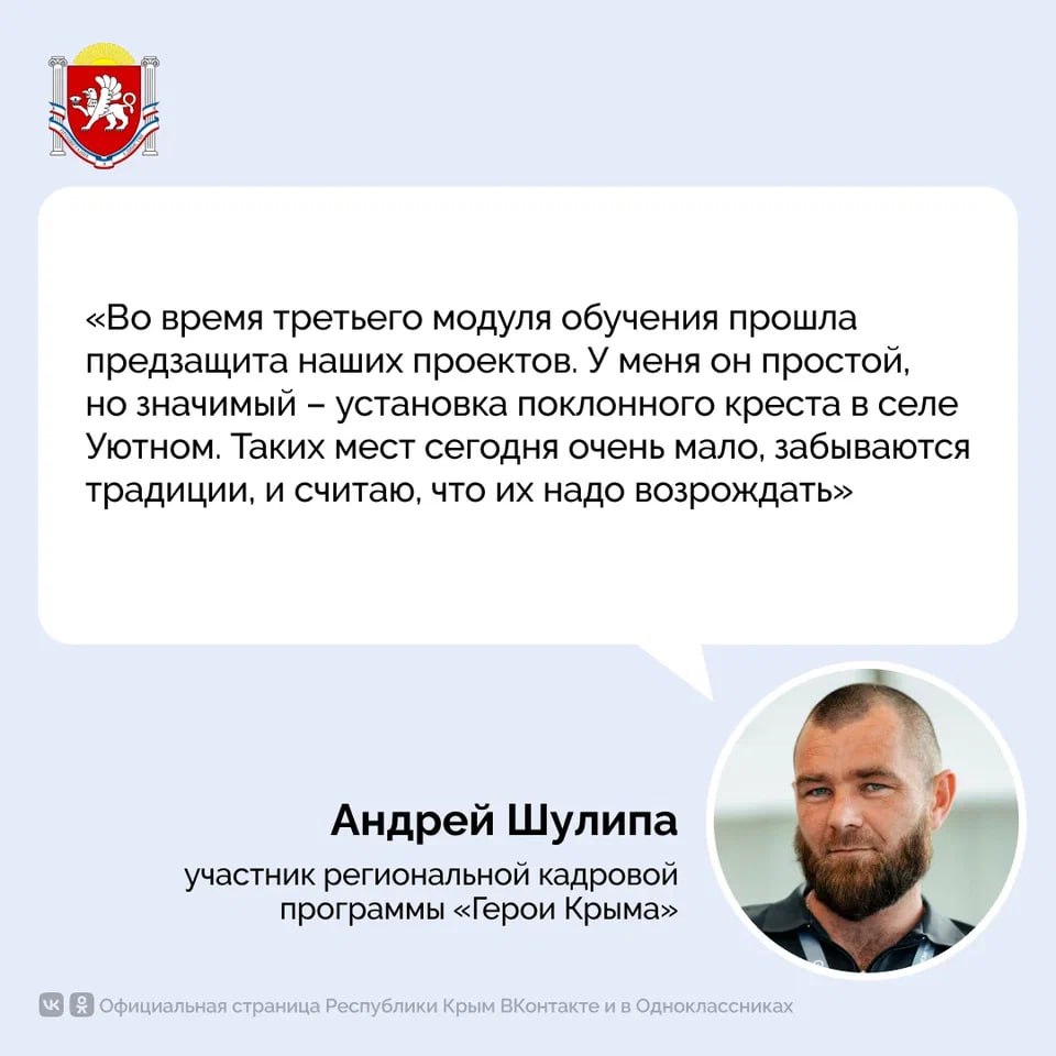 Участник региональной кадровой программы «Герои Крыма» Андрей Шулипа поделился впечатлениями о третьем модуле программы и рассказал о своём индивидуальном проекте
