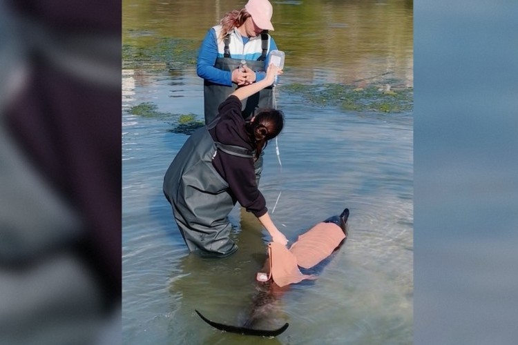 Дельфин в надежных и заботливых руках. Фото: Центр реабилитации дельфинов «Безмятежное Море»/Vk