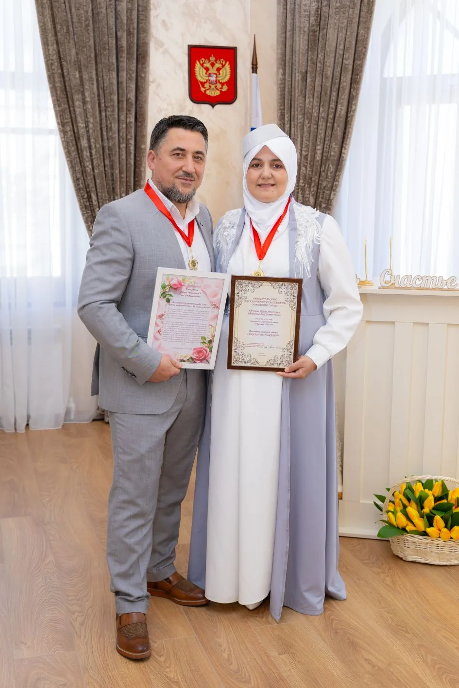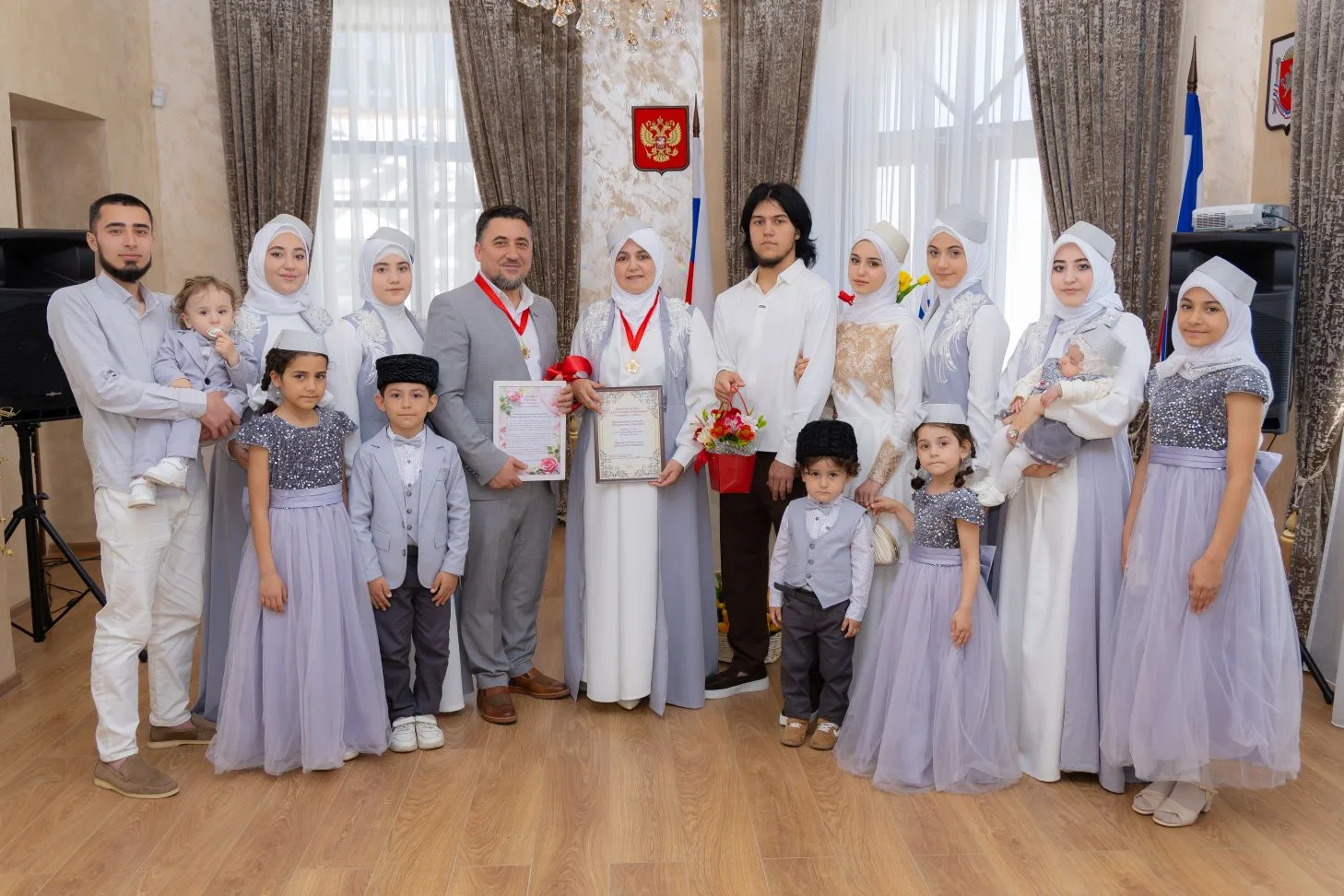 Бахчисарайский районный отдел ЗАГС провёл торжественное мероприятие, посвящённое «атласному» юбилею супружеской жизни семьи Ибрагимовых — Ридвана Мусановича и Лили Сеитаметовны, отметивших 24 года совместного пути. Праздник стал частью масштабной акции «Спасибо весне за любовь», направленной на укрепление семейных ценностей и преемственности поколений. В ходе церемонии прозвучали слова о значении семьи как основы общества, о важности сохранения традиций и воспитания детей в атмосфере любви и уважения.
