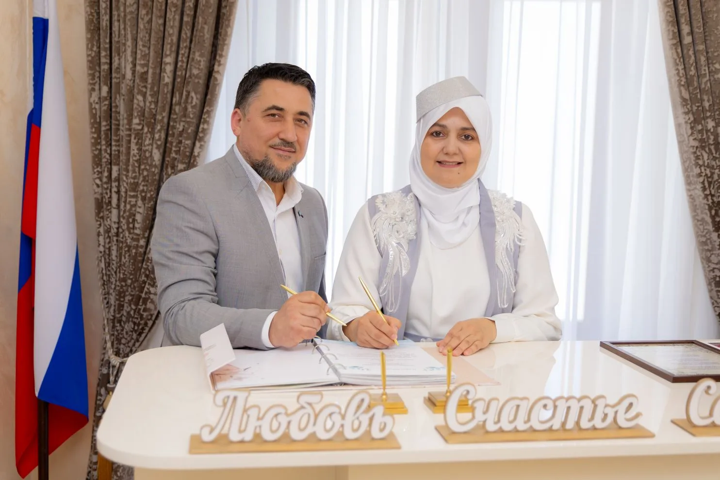 В ходе церемонии супруги подтвердили свои чувства и вновь выразили готовность идти по жизни вместе. По традиции они поставили подписи в Почётной книге юбиляров Бахчисарайского отдела ЗАГС, закрепив тем самым значимость прожитых лет. Им было вручено памятное свидетельство об «Атласном юбилее», цветы и юбилейная медаль.
