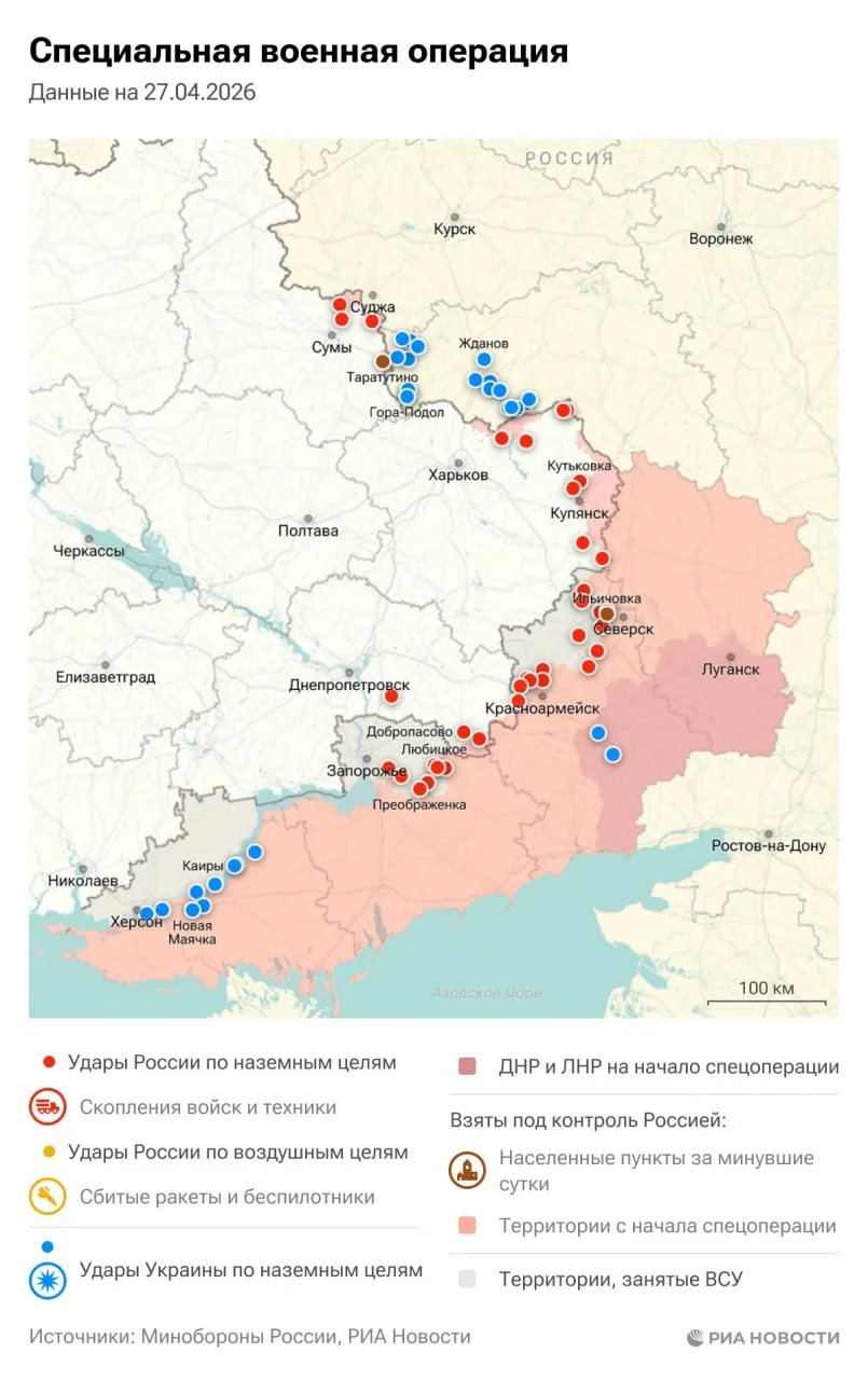 В ночь на 26 апреля произошла массовая атака украинских БПЛА на Севастополь. Губернатор города Михаил Развожаев сообщил, что значительная часть дронов была сбита над Крымом. "Около ста беспилотников пытались атаковать наш город. Большинство из них...
