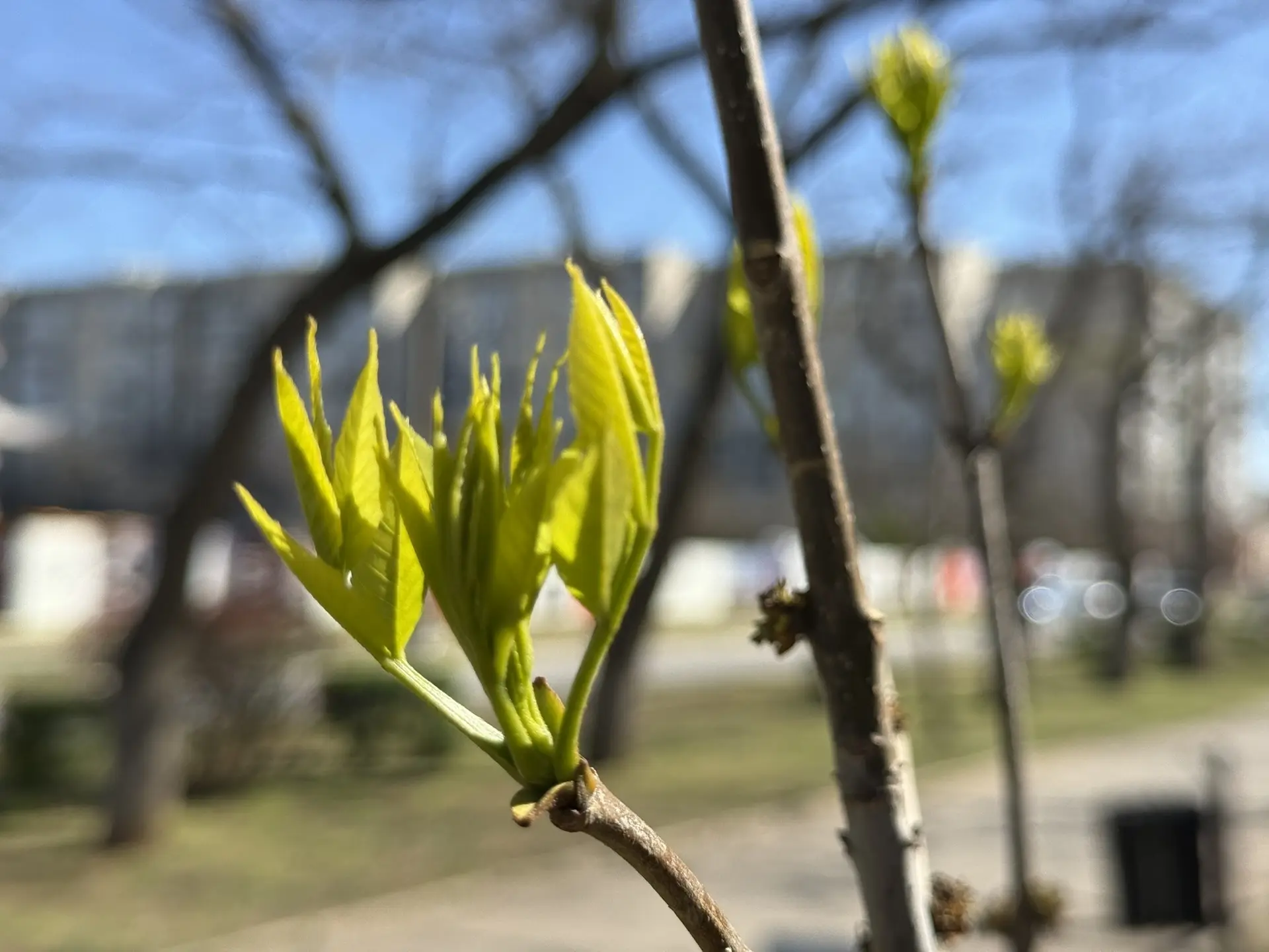 На молодых деревьях на проспекте Ленина, других центральных улицах и в скверах тоже появились зелёные листья.