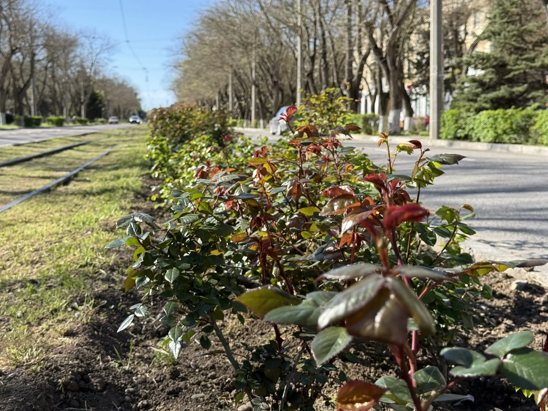 Розы, высаженные вдоль трамвайной линии на улице Фрунзе, чувствуют себя прекрасно. Скоро улица вернет себе прежний цветущий облик.