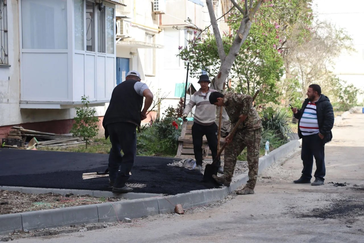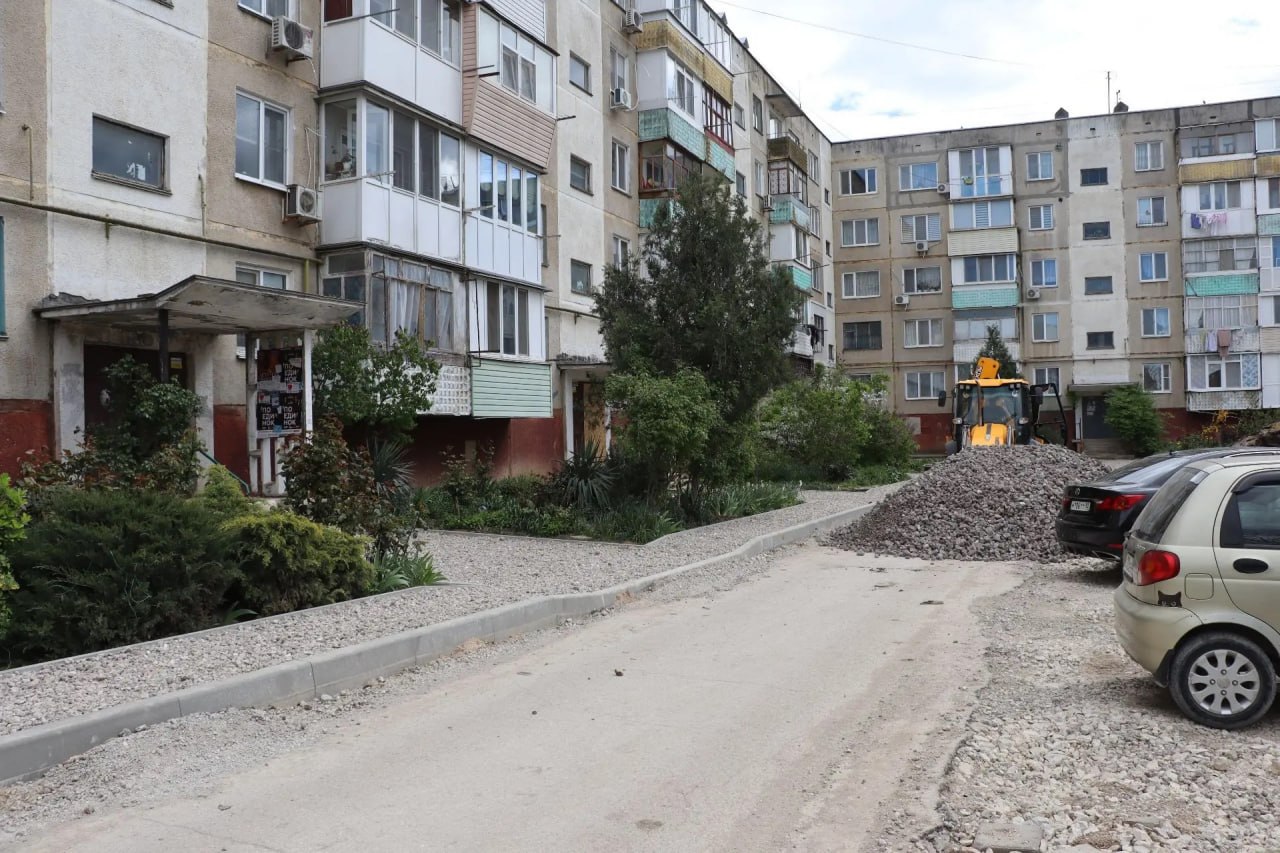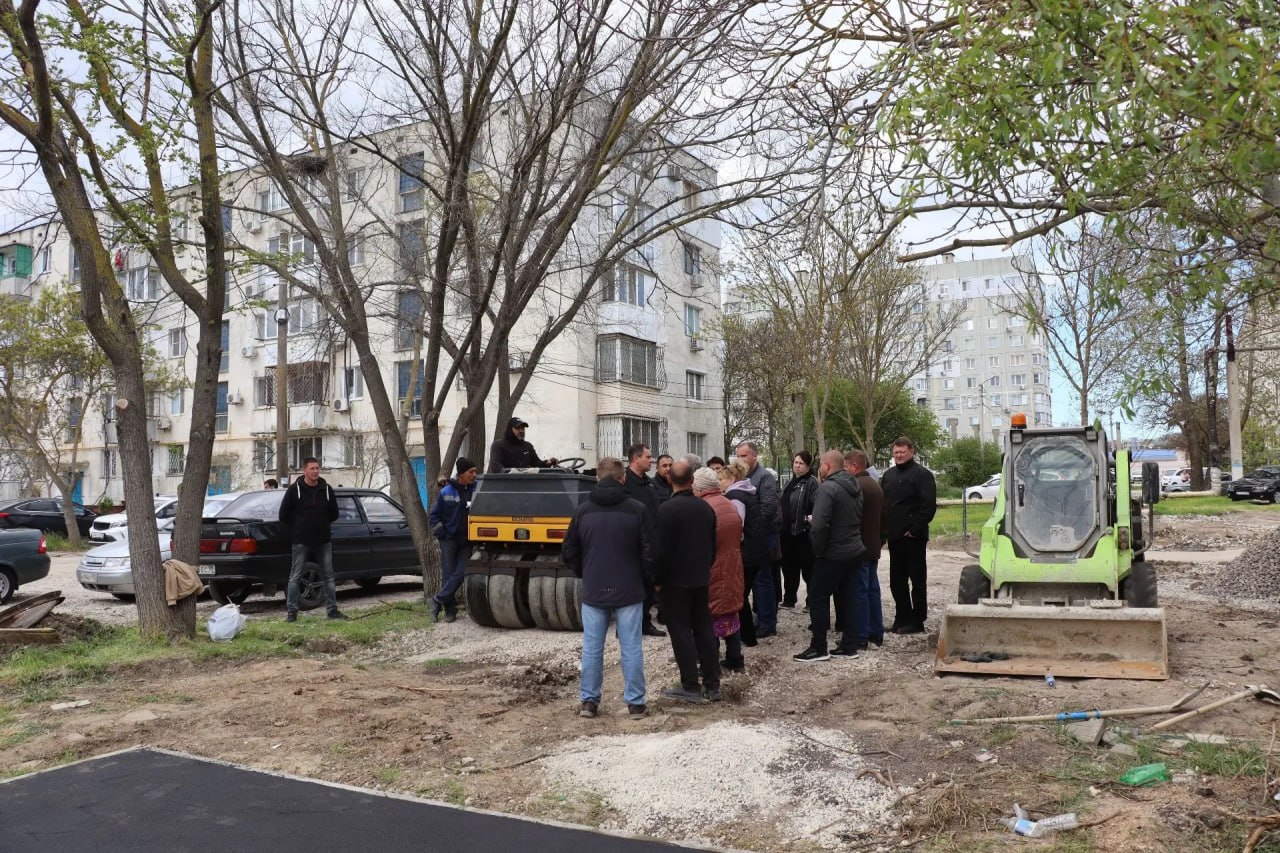 Ведется асфальтирование у подъездов.