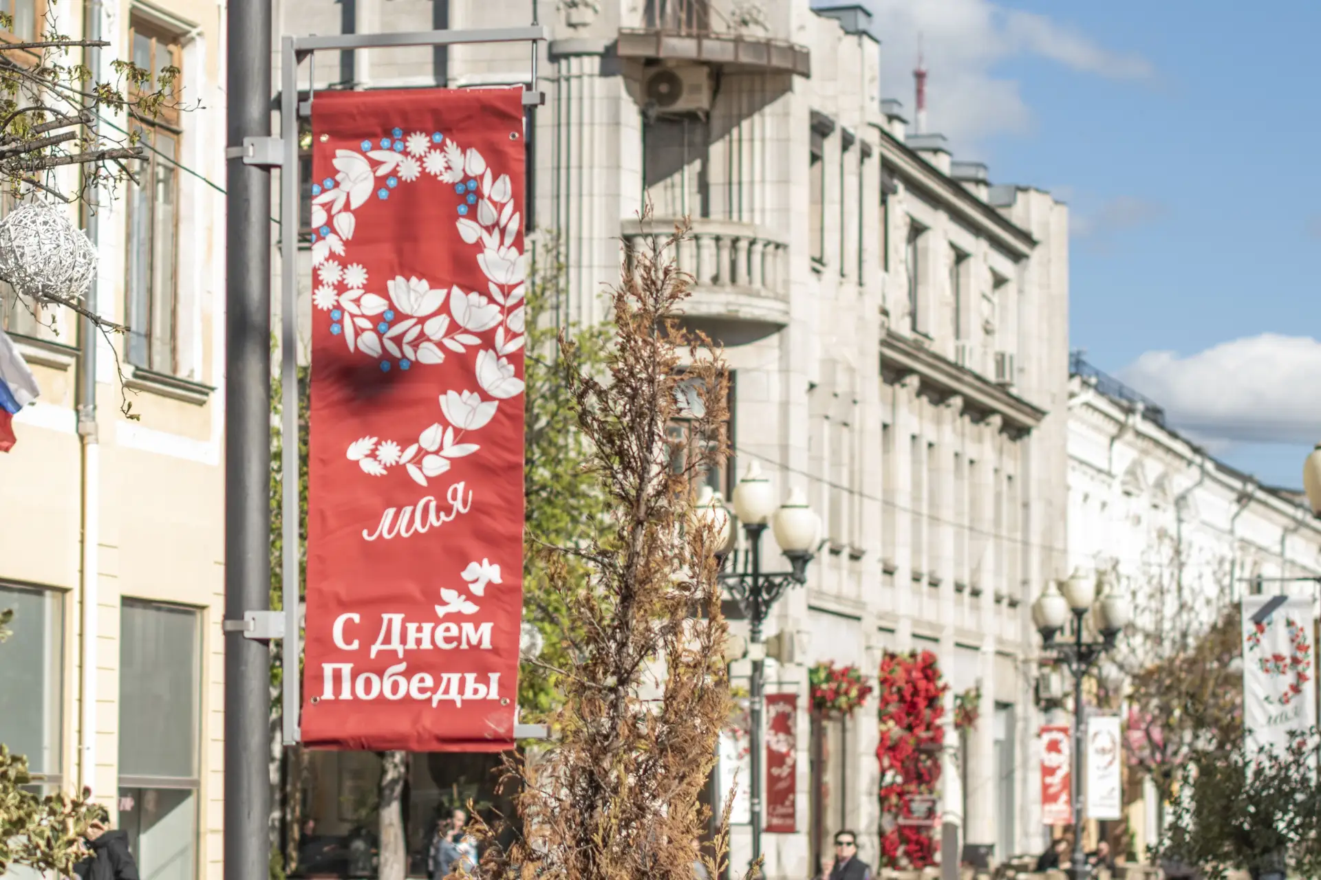 На улицах нашего города активно проводятся работы по установке тематических баннеров, флагов и инсталляций, посвященных 81-й годовщине Великой Победы.