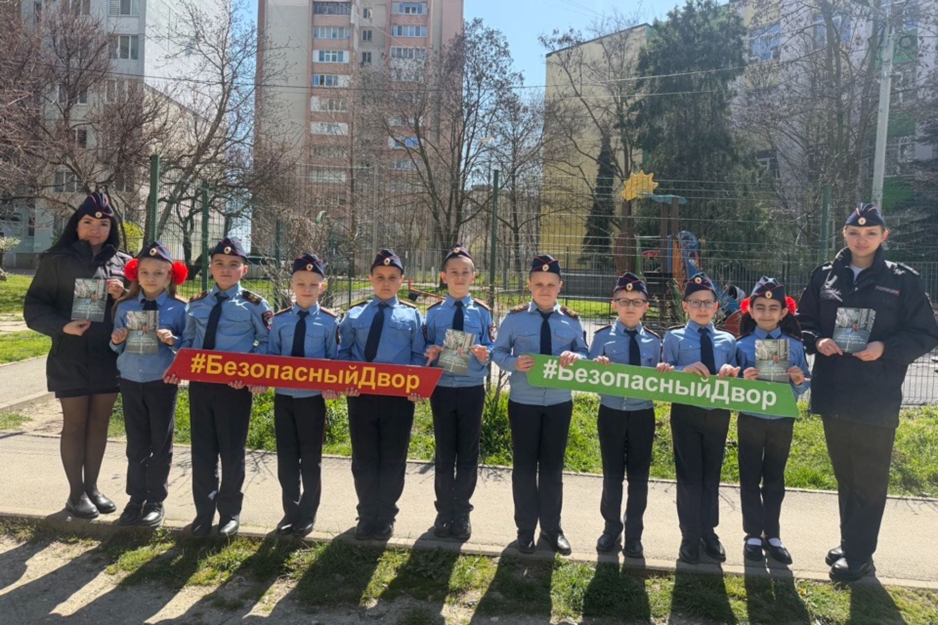 С целью предупреждения дорожно-транспортных происшествий с участием детей-пешеходов в жилых зонах и во дворах многоквартирных домов, автоинспекторы и кадеты специализированного класса Госавтоинспекции провели информационно-просветительскую акцию «Безопасный двор».