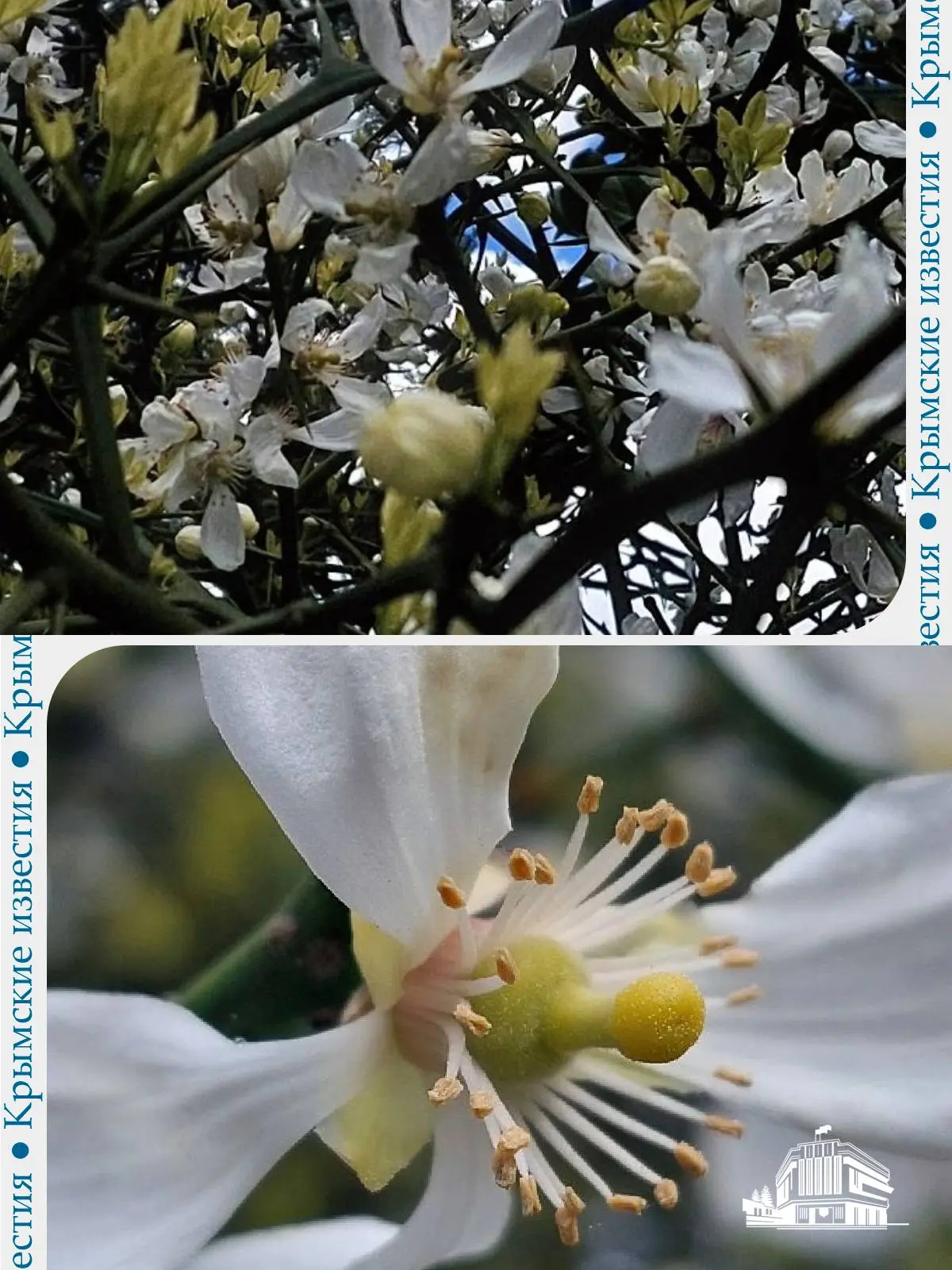 В Никитском ботаническом саду зацвёл понцирус трёхлисточковый. Это единственное в мире цитрусовое растение, у которого опадают листья.