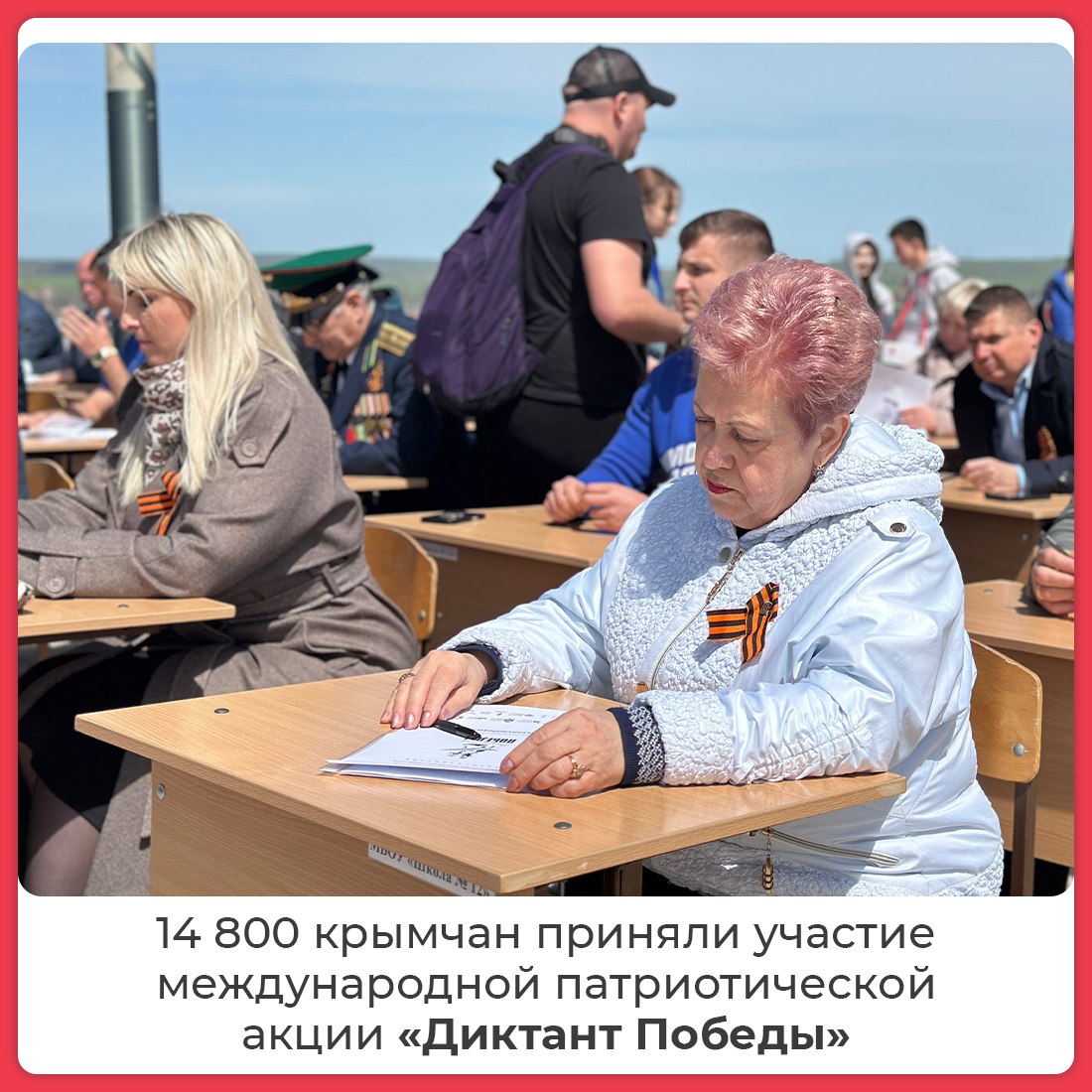 Крым в восьмой раз присоединился к международной исторической акции — «Диктанту Победы». В этом году он был посвящён юбилейным датам, в том числе 130-летию Георгия Жукова. Участники ответили на 25 вопросов о важных датах, именах и событиях за 45 минут. Темы касались событий Великой Отечественной войны и СВО.