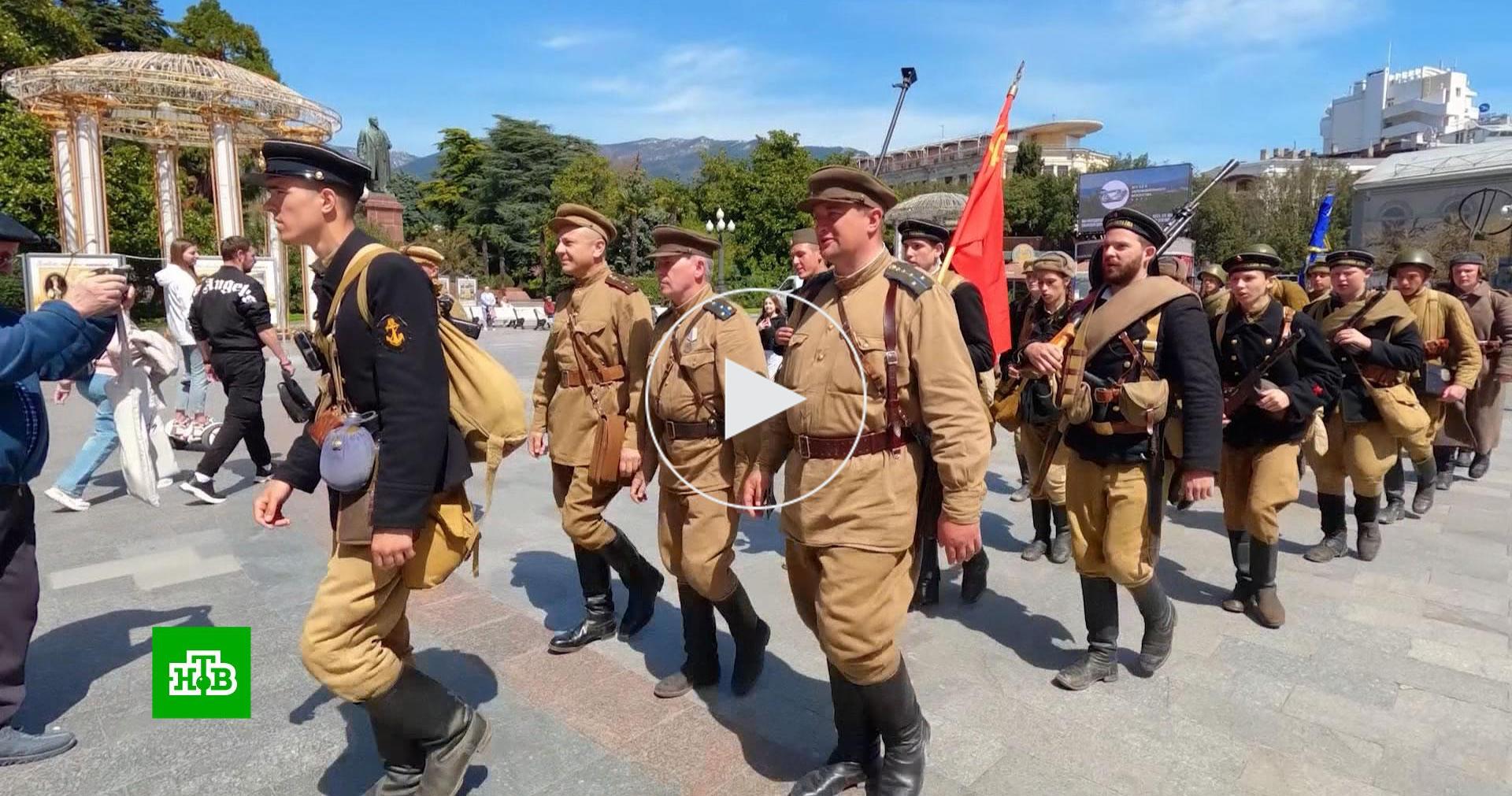 Солдатская песня в центре Ялты перебивает мегафоны зазывал на морские прогулки и музыку из кофеен и ресторанов. Парадным маршем отряд реконструкторов в экипировке времен Великой Отечественной отмечает 82-ю годовщину освобождения курортного города от немецкой оккупации. Для многих в отряде это прогулка по родным улицам. Проект «Дорогами освободителей» появился в Ялте.
