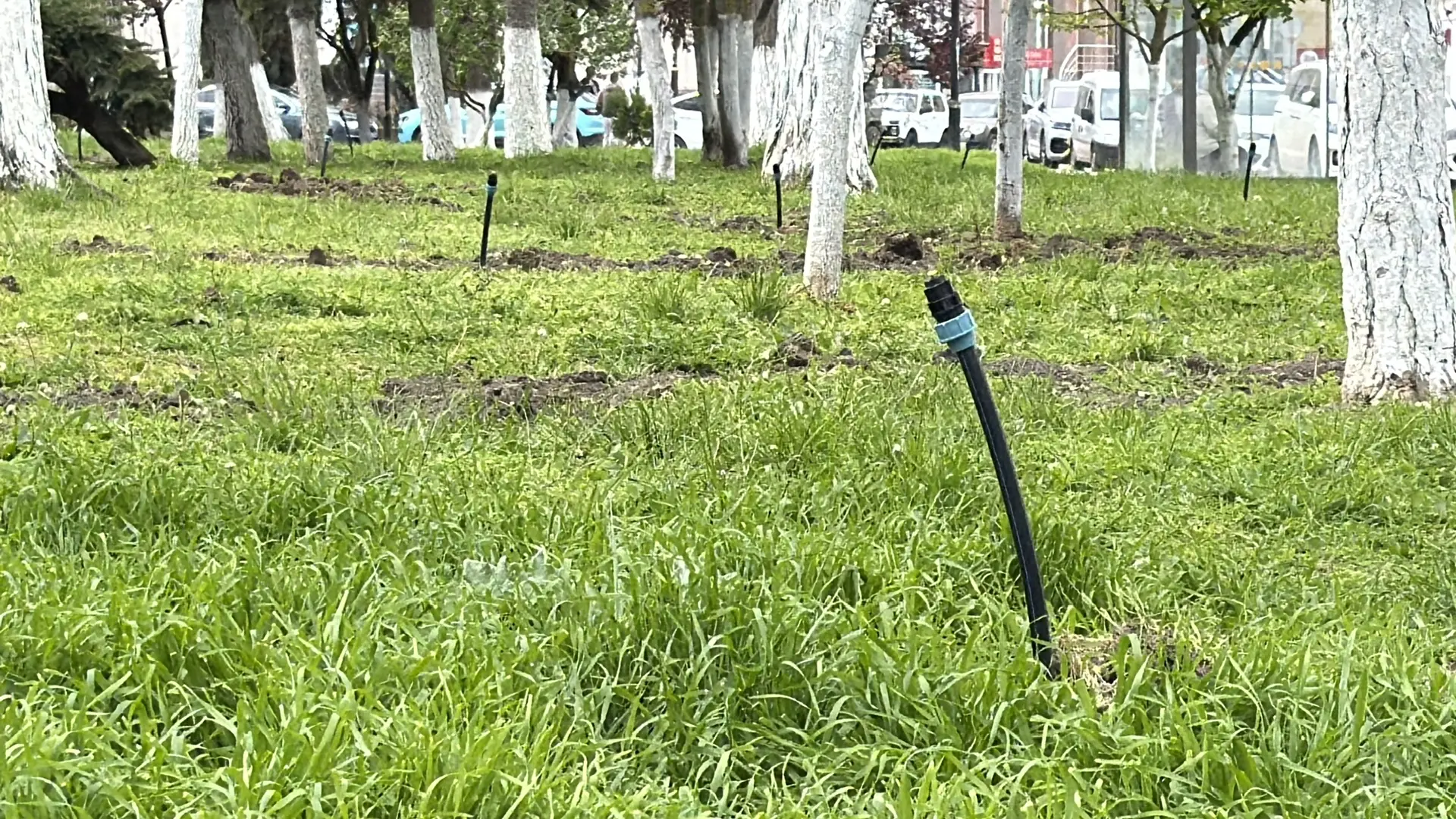 Всего планируется проложить систему орошения на 5 условных участках – зеленых зонах. Это примерно 400 метров труб различного диаметра. Уже уложена половина от общего объема, смонтированы 9 из 11 колодцев. На днях был произведен тестовый запуск готового участка, в результате которого принято решение увеличить общее количество форсунок-распрыскивателей до 90 штук.