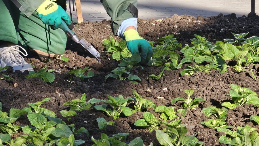 За цветочным оформлением города стоит кропотливая работа. Работа на клумбах после высадки не заканчивается — за ними постоянно ухаживают. Специалисты рыхлят почву, удаляют сорняки, поливают растения и обрезают отцветшие бутоны, где это необходимо. Такой системный подход позволяет сохранять цветники и радовать жителей и гостей города яркими, ухоженными композициями до конца сезона.