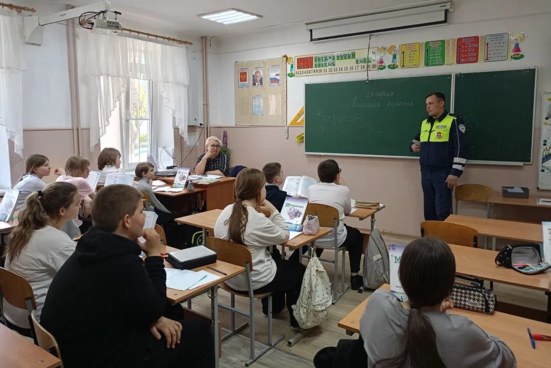 Инспектор Госавтоинспекции обратился с призывом соблюдать правила дорожного движения, быть примером для подрастающего поколения, отметив, что изменить ситуацию на дорогах к лучшему можно лишь тогда, когда каждый начнёт менять её, начиная с себя. Также он пояснил, что залог их безопасности на дороге - внимание, ответственность и неукоснительное соблюдение Правил дорожного движения.