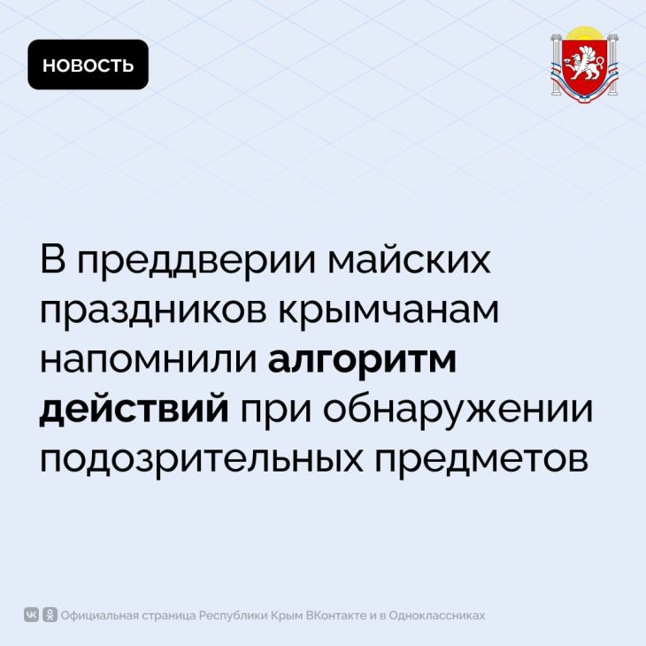 В случаях обнаружения взрывных устройств и подозрительных предметов необходимо немедленно сообщить об этом в дежурные службы МВД, ФСБ, МЧС.