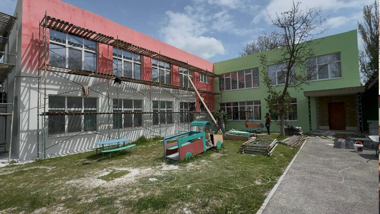 В детском саду №55 «Хрусталик» приступили к финишной отделке фасада здания.