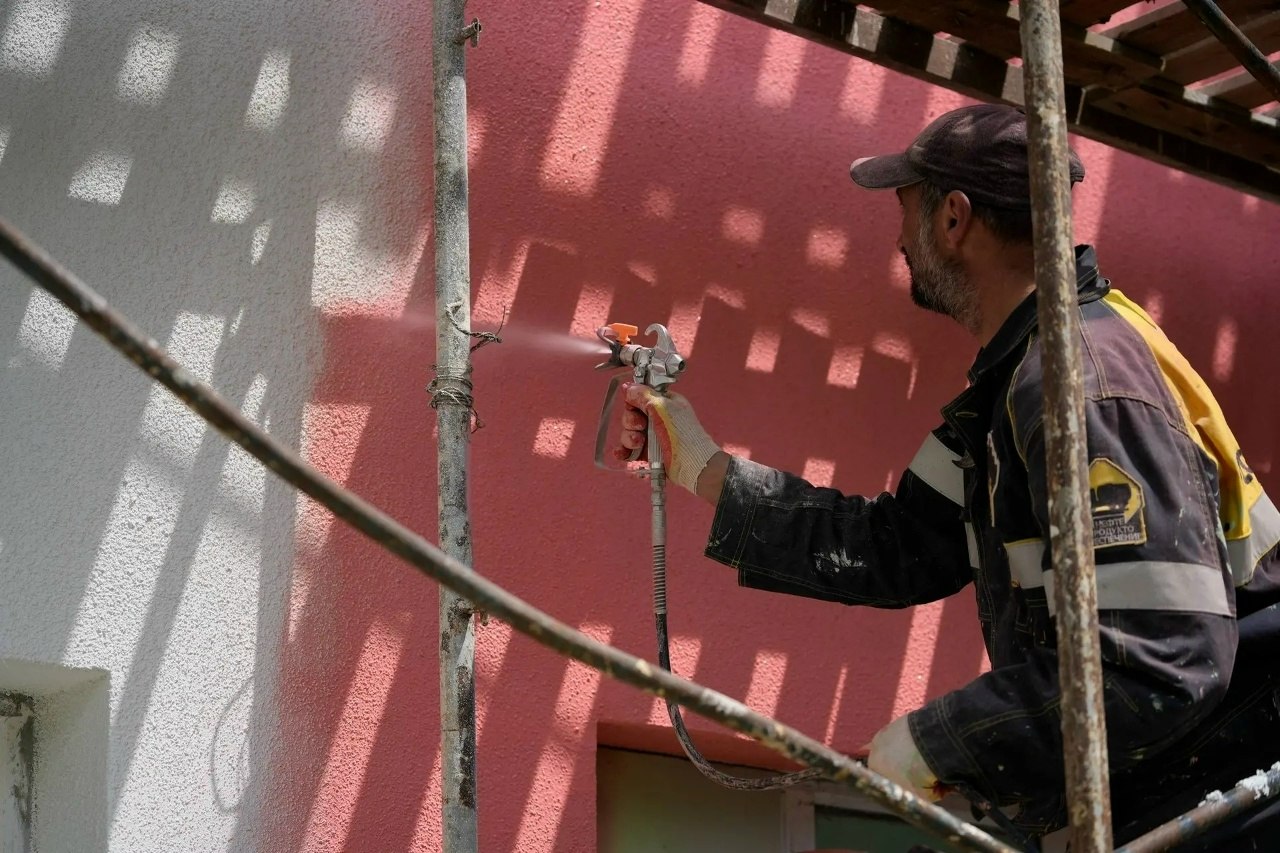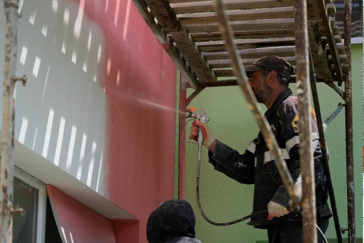 Начаты работы по финальной покраске. До этого специалисты подрядной организации уже выполнили утепление, оштукатурили и облицевали стены.
