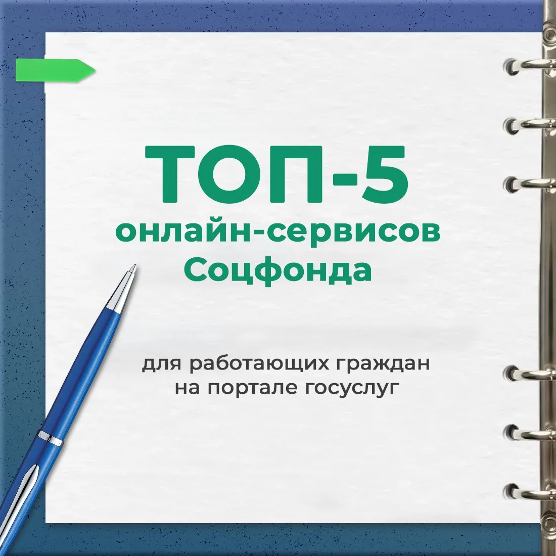 В карточках собрали ТОП-5 онлайн-сервисов Соцфонда для работающих граждан на портале госуслуг.