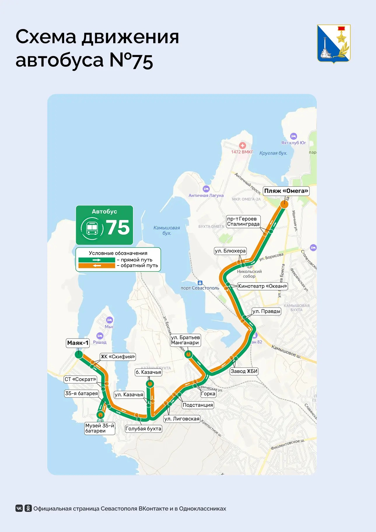 Напомним, маршрут № 105 курсирует по маршруту «посёлок Кальфа — Маяк-1», а № 75 — «бухта Казачья — пляж Омега (с заездом на улицу Братьев Манганари)».