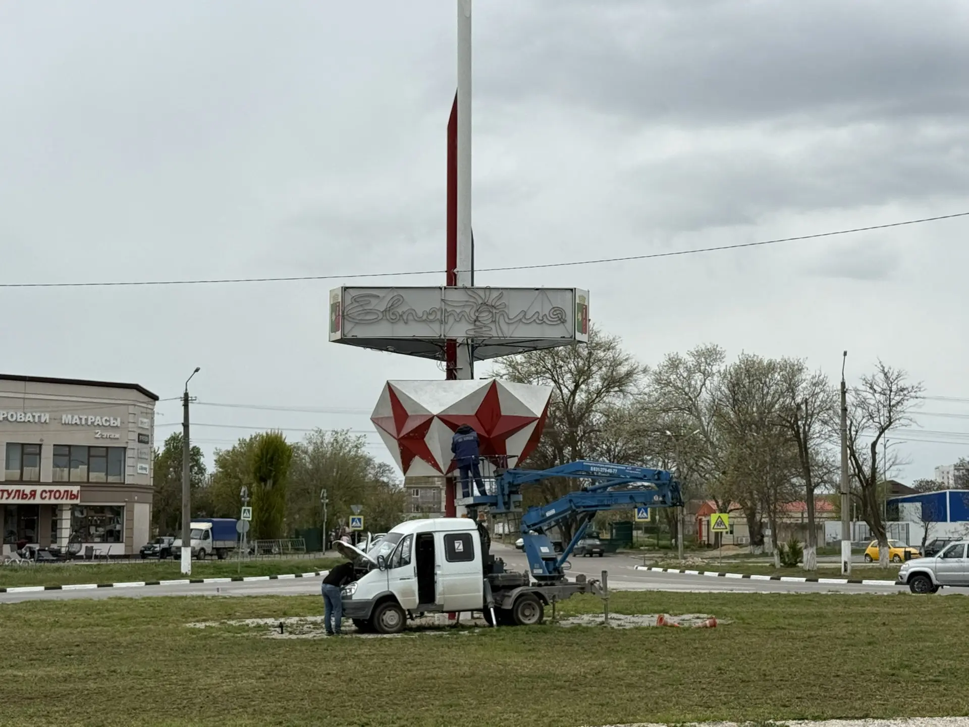 Специалисты МБУ «Порядок» обновляют лакокрасочное покрытие стелы на кольце по улице Эскадронной, а также окрашивают бордюры на въездной группе в город.