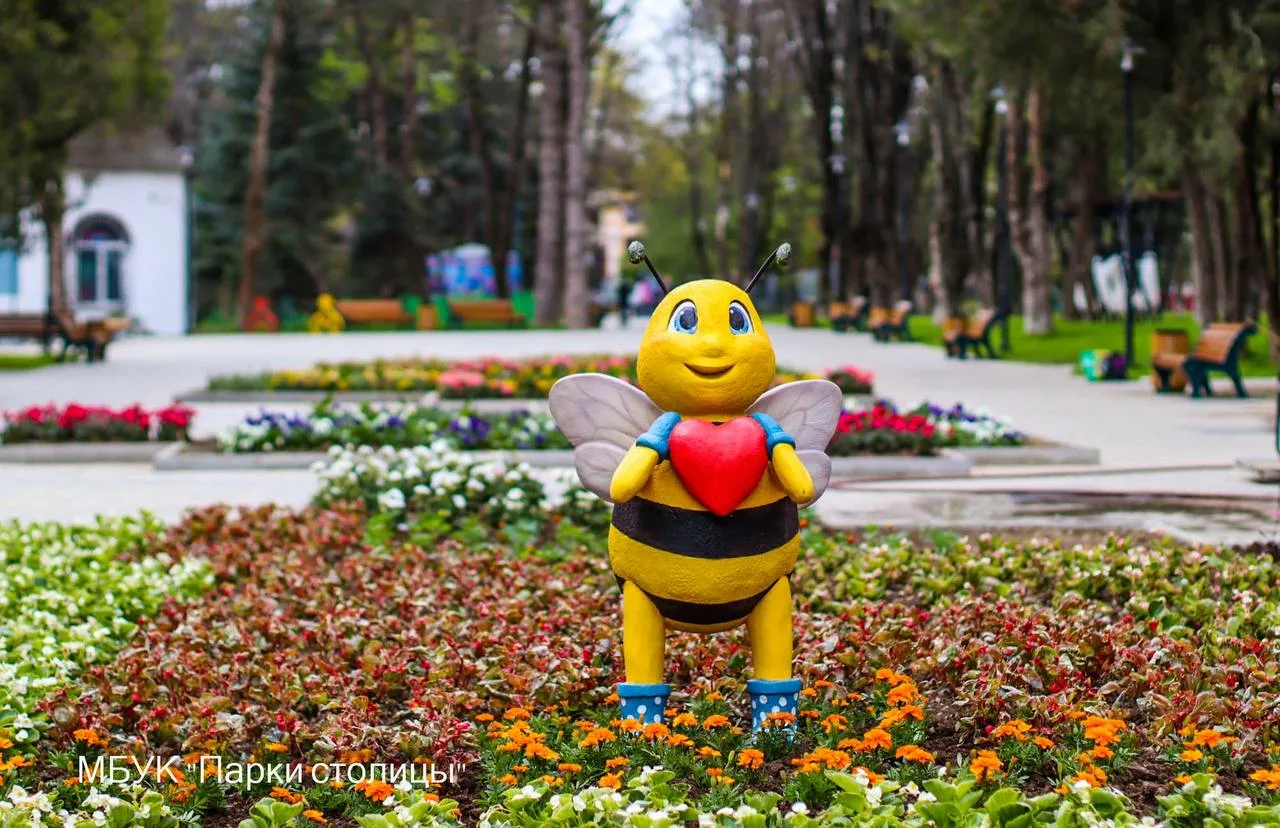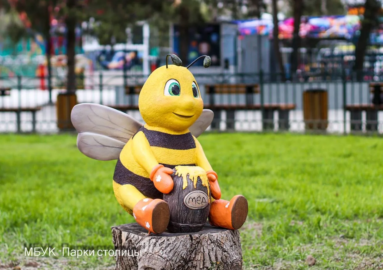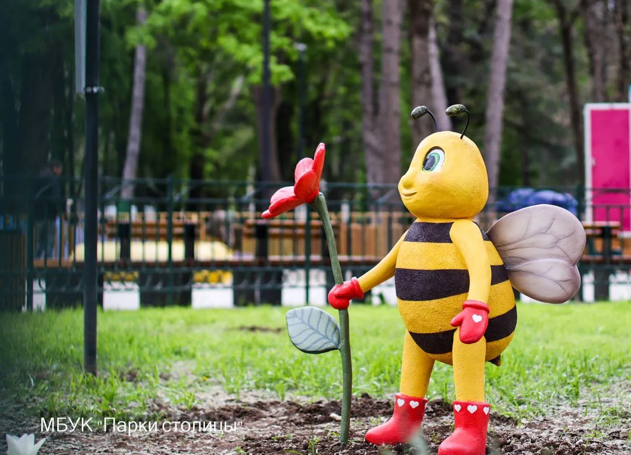 Четыре полосатые фигурки добавили парку тепла и хорошего настроения