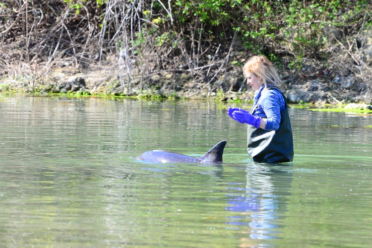 На пару часов я стала настоящей нянькой для дикого дельфина. История эта приключилась в одной из бухт в Севастополе. Сюда заплыла больная белобочка, и на следующий день, 18 апреля, центр реабилитации дельфинов «Безмятежное море» развернул на берегу полевой лагерь.