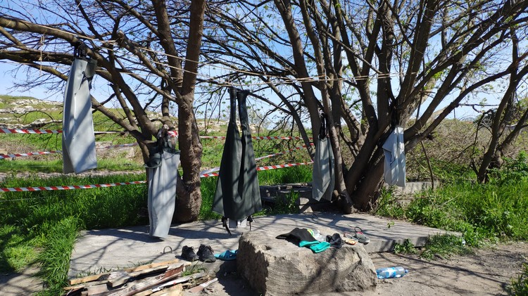 Здесь все по-спартански: палатка, камни вместо столов и стульев, а на ветках сушатся рыбацкие заброды (рыбацкие непромокаемые полукомбинезоны, - от ред.) и перчатки.