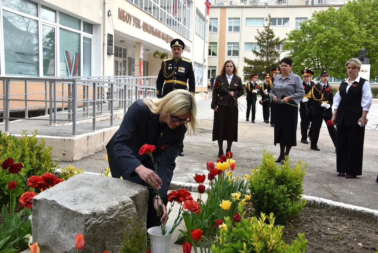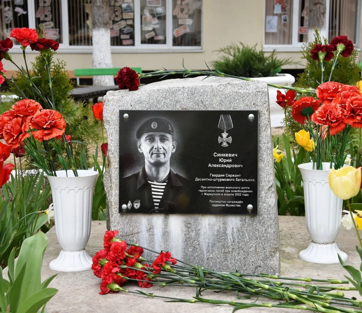 В завершение мероприятия присутствующие возложили цветы к мемориальному знаку выпускника Ю.А. Синкевича, погибшего в 2022 году при исполнении воинского долга.