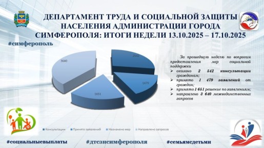 Всего за прошедшую неделю:по вопросам предоставления мер социальной поддержки оказано 2 542 консультации гражданам.принято 1 479 заявлений от граждан на предоставление мер социальной поддержки, в том числе 133 через...