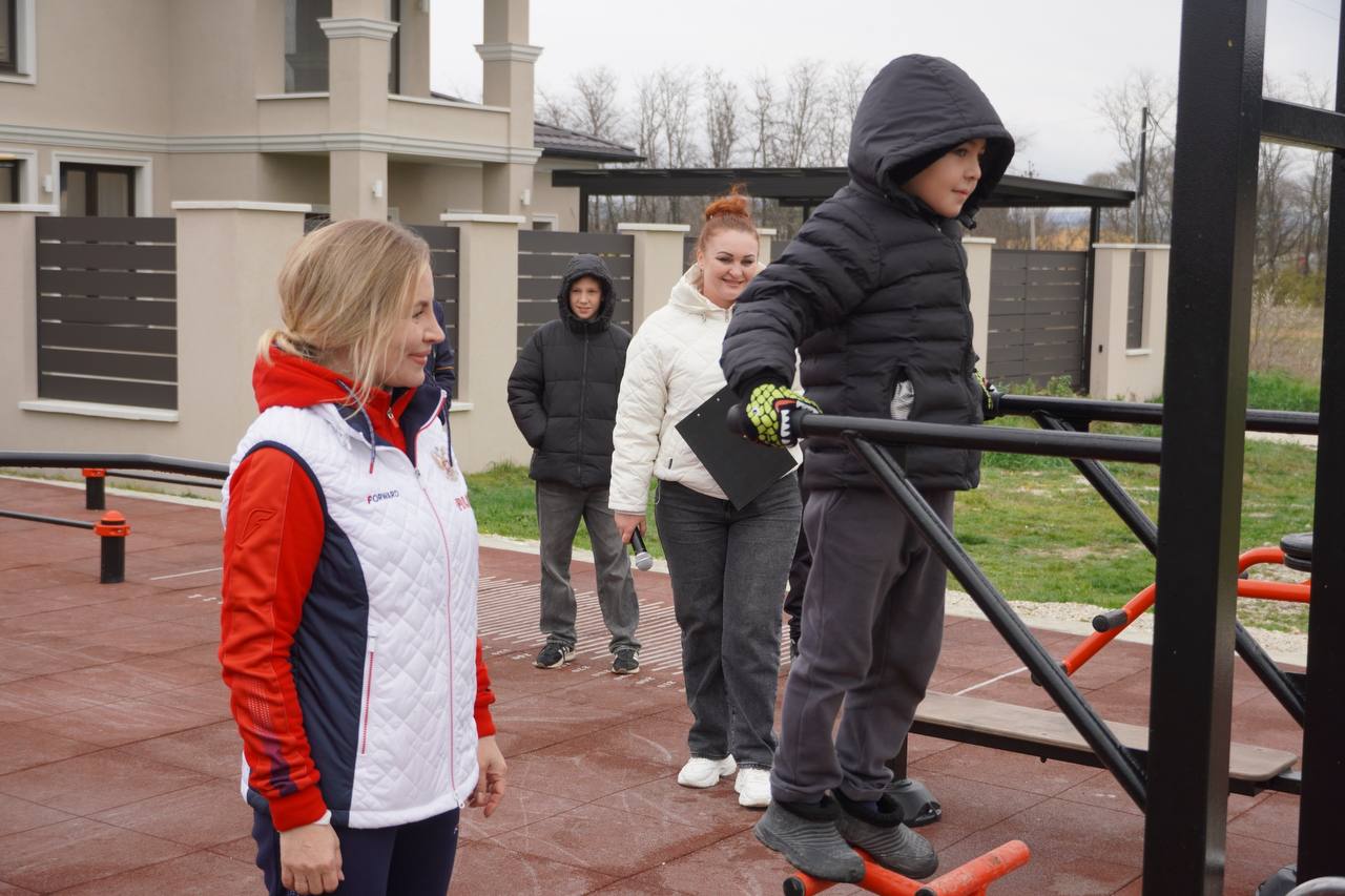 Совместно с главой администрации Белогорского района Дмитрием Сергеевичем Чумаковым открыли две новые спортивные площадки: универсальную игровую и для подготовки к сдачи норм ГТО.