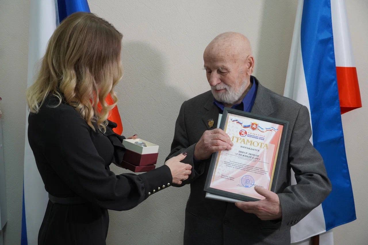 В Министерстве спорта Республики Крым состоялась торжественная церемония вручения восстановленной награды ветерану спорта, мастеру спорта СССР по альпинизму — Зинуру Люману.