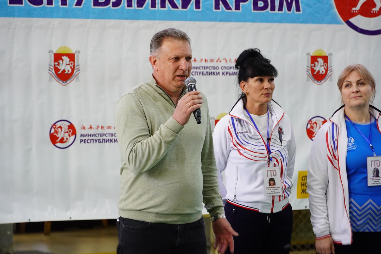 От имени министра спорта Республики Крым Ольги Александровны Торубаровой в торжественной церемонии открытия принял участие первый заместитель министра спорта Республики Крым Сергей Александрович Гниздыло.